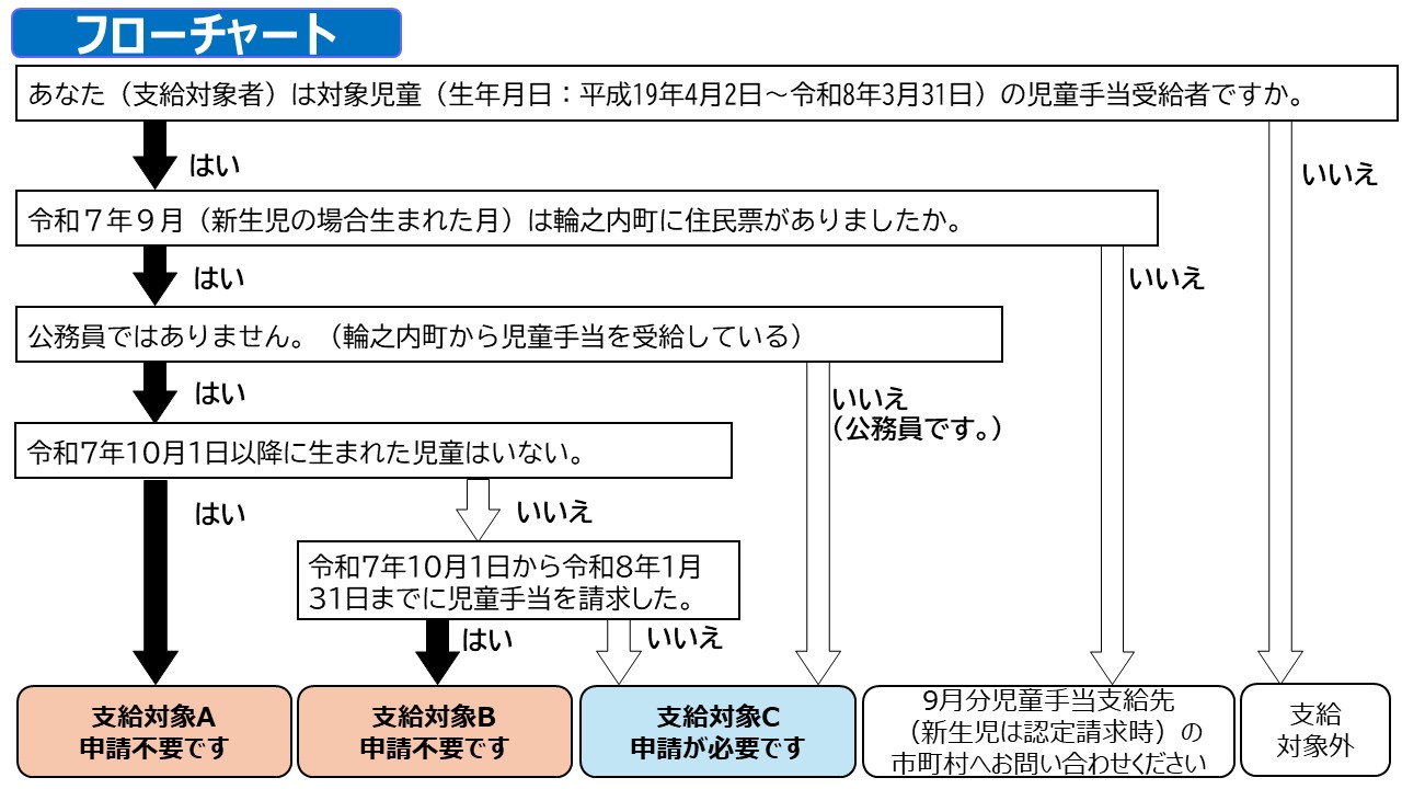 本手当について、申請不要な方と申請が必要な方に分かれます。フローチャートをご確認ください。